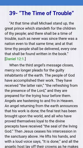 * Contenu Engageant et Inspirant : L'application présente l'histoire finale de la série Conflit des Siècles, détaillant la bataille ultime entre Dieu et Satan.