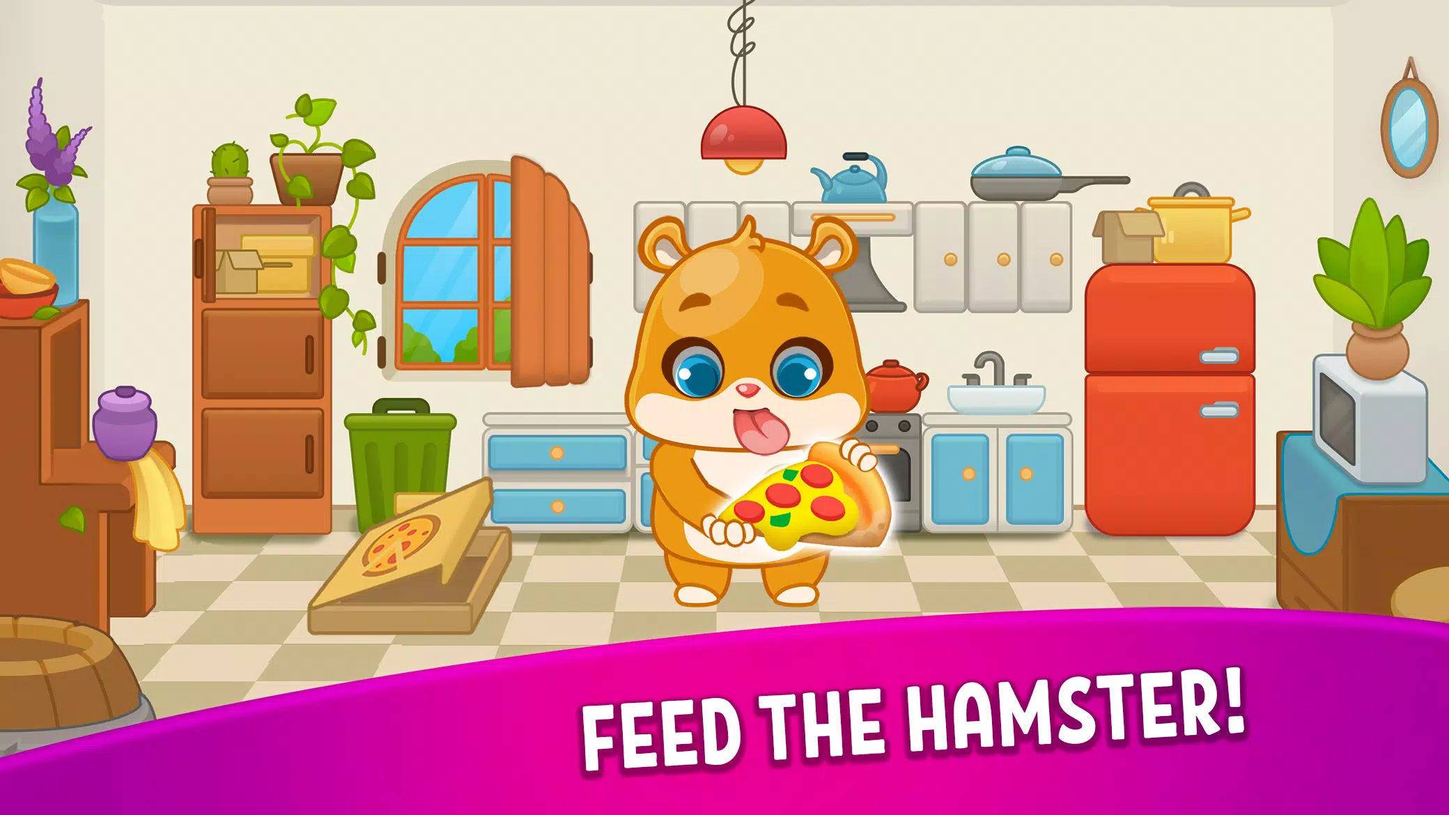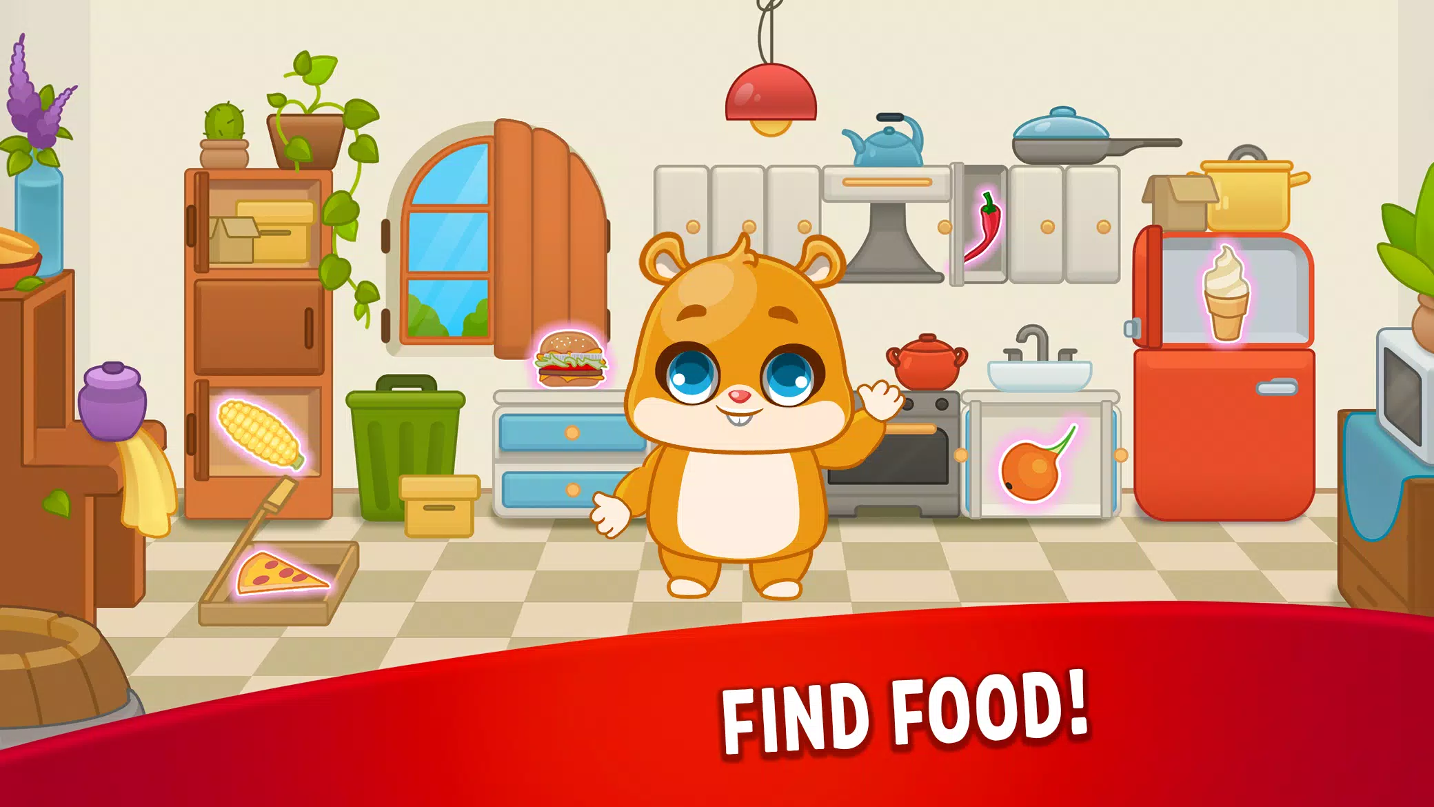 Discover engaging toddler games for baby boys and girls! Enjoy playful animal adventures: pet kitchen, gym & more! "Hamster's House" is the ultimate fun-filled educational app designed specifically for toddlers. Let your little ones explore an interactive world with our charming hamster while learning about his cozy home. Perfect for children aged 2 to 5, this exciting learning app offers endless discovery.