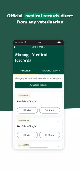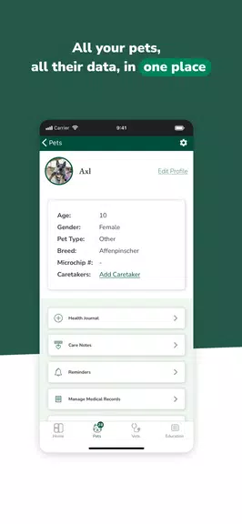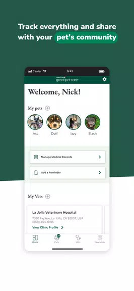 - かんたんな獣医師との連絡:ガイダンス、予約スケジュール、処方箋の再発行のために、アプリを通じて獣医師にすばやく連絡できます。ペットの医療チームとの強力なつながりを維持し、スムーズなコミュニケーションと調整されたケアを実現します。