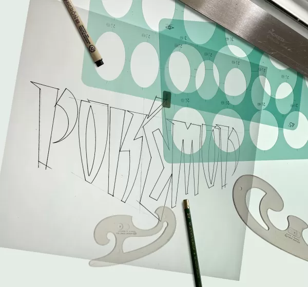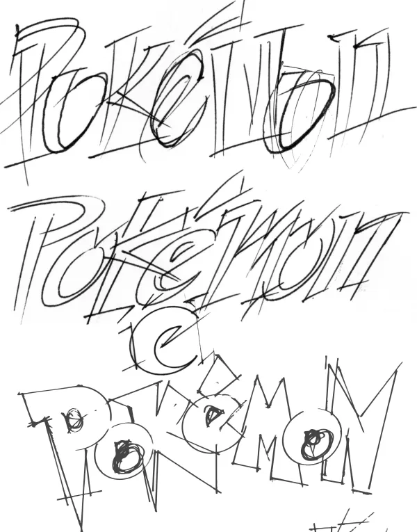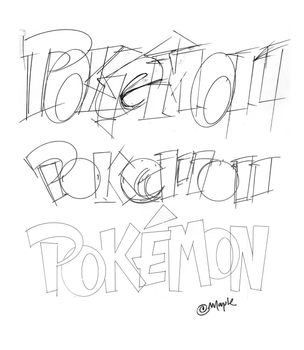 1ヶ月という期限以外に指示はなく、メイプルは手で様々なバリエーションをスケッチし始めた。彼は厳しい制約下で作業した。ロゴはゲームボーイの小さな画面に収まり、白黒でも機能しなければならない。プレイするゲームも多くの背景情報も与えられず、ただ小さなピカチュウのフィギュアと初期の『Nintendo Power』の資料だけだった。