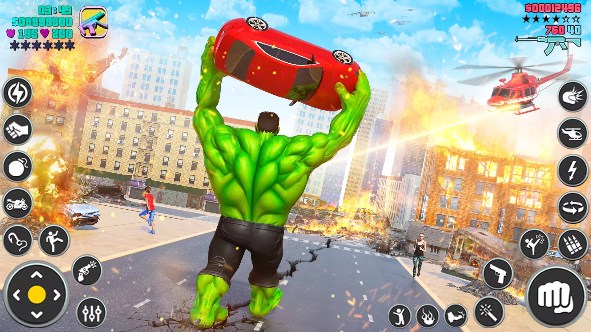 O Grand Incredible Monster Hero Game está repleto de ação sem parar em um mundo aberto. Jogue como um herói monstro capaz de rugir, pular alto, correr rápido, chutar, arrebentar, socar, levantar carros e pessoas, e lançá-los com força. Sua vida diminui quando a polícia atira em você. Ganhe pontos para desbloquear o próximo nível.