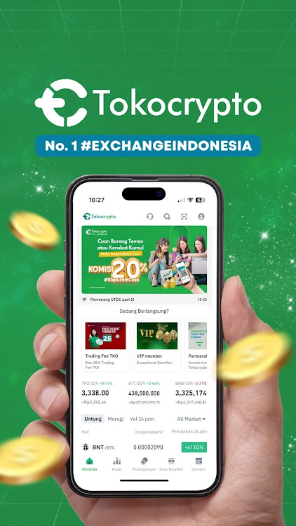 Tokocrypto 是印度尼西亚领先的加密货币平台,已获得超过350万用户的信赖。作为印度尼西亚首屈一指的加密货币交易所,Tokocrypto 提供安全高效的数字资产交易平台,支持比特币、以太坊等各类数字货币交易。平台拥有直观的界面、全天候技术支持,并符合全球安全协议,带来无忧交易体验。平台采用前沿安全技术,保持完全透明,以保障用户资金安全。享受具有竞争力的手续费与即时交易执行——无论是新手投资者还是经验丰富的交易者,皆可轻松上手。